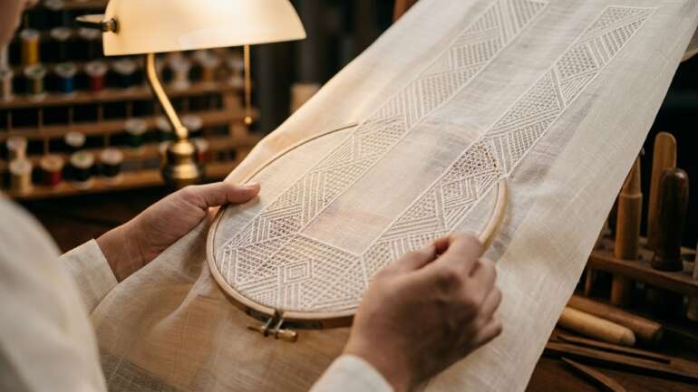 Conversely, there is a renewed appreciation for “Calado”—a painstaking technique where threads are pulled from the fabric to create a lace-like, perforated effect.