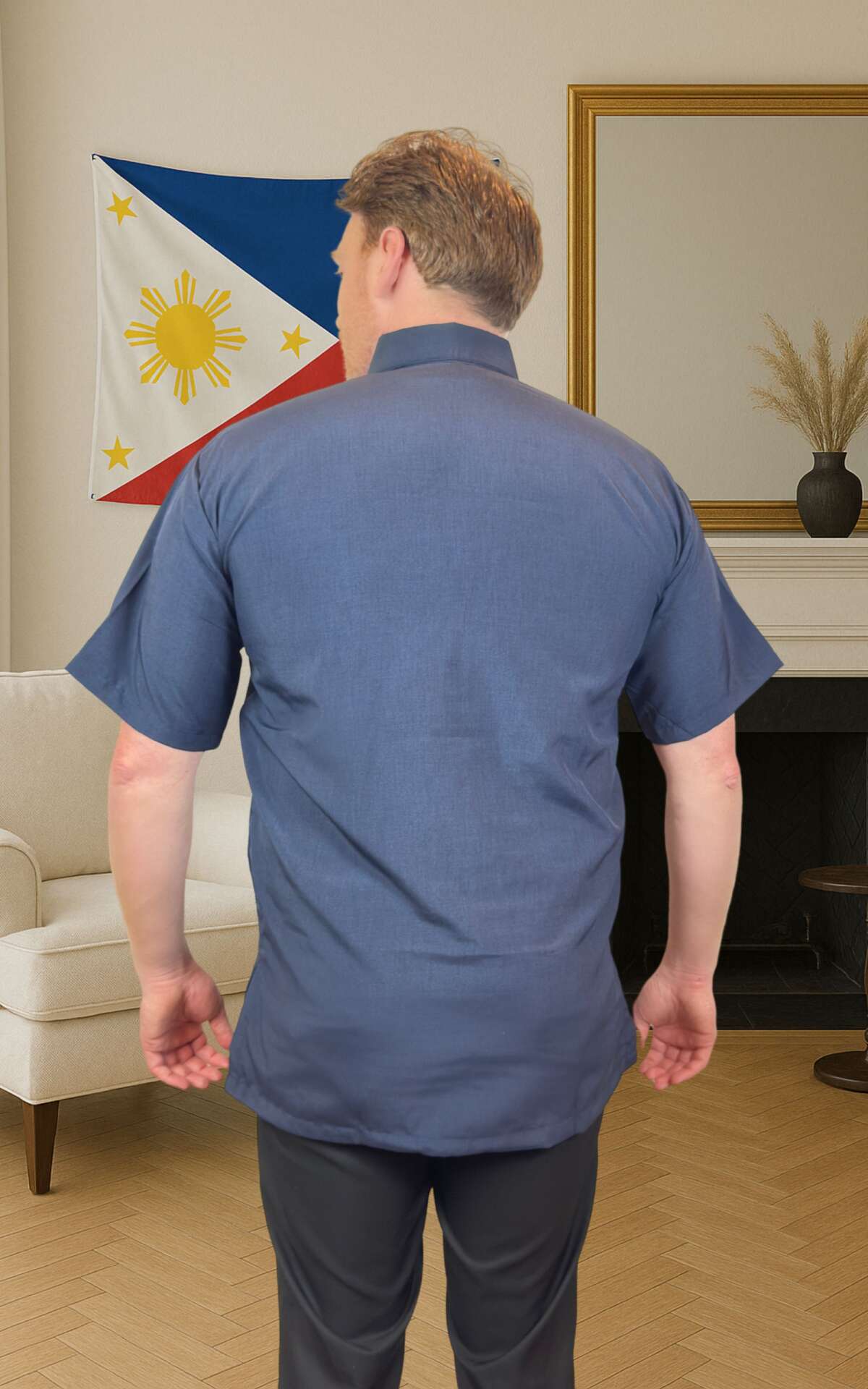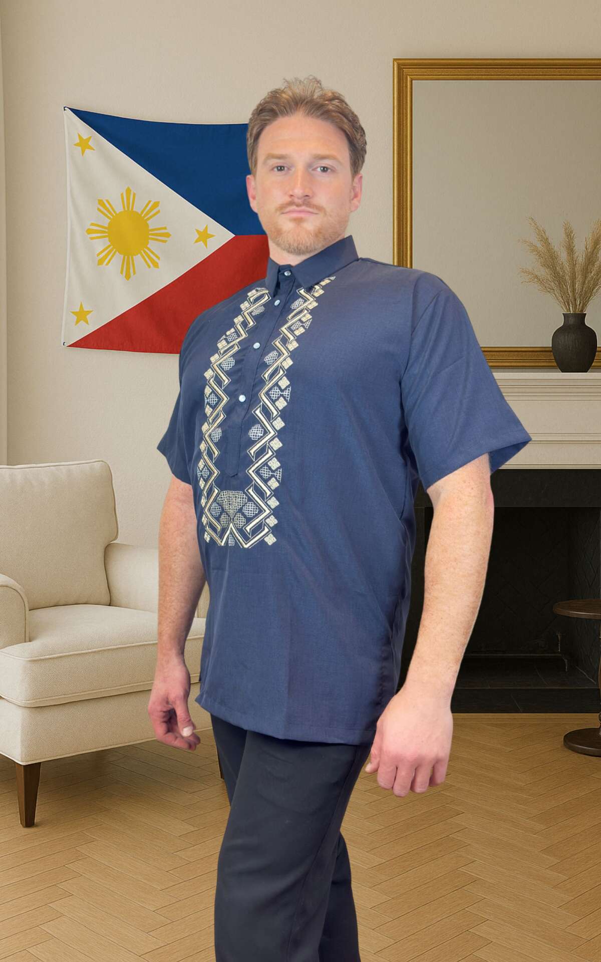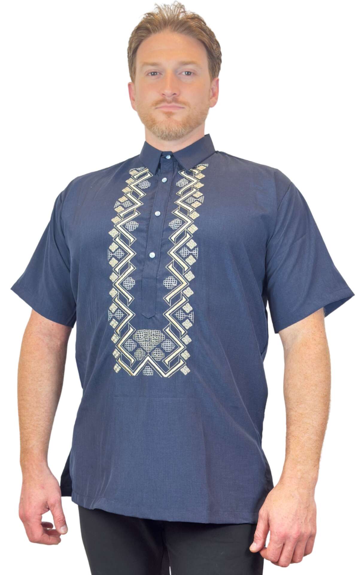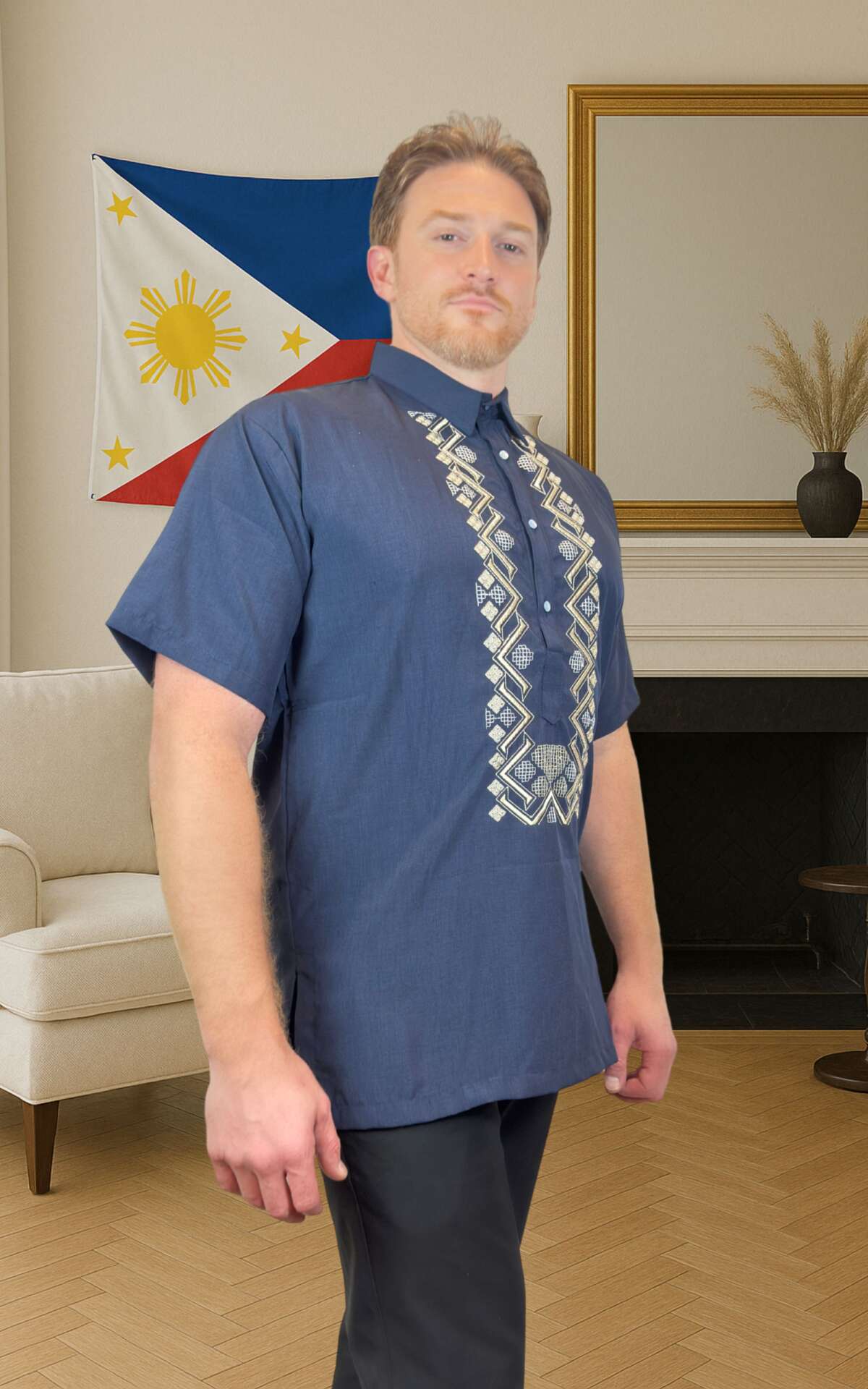 Featuring exquisite two-tone embroidery, a traditional straight point collar, and a half-button front, this shirt is perfect for short sleeve dress shirts, black button-ups, or white polo shirts. US sizing with Filipino guidance ensures an ideal fit.