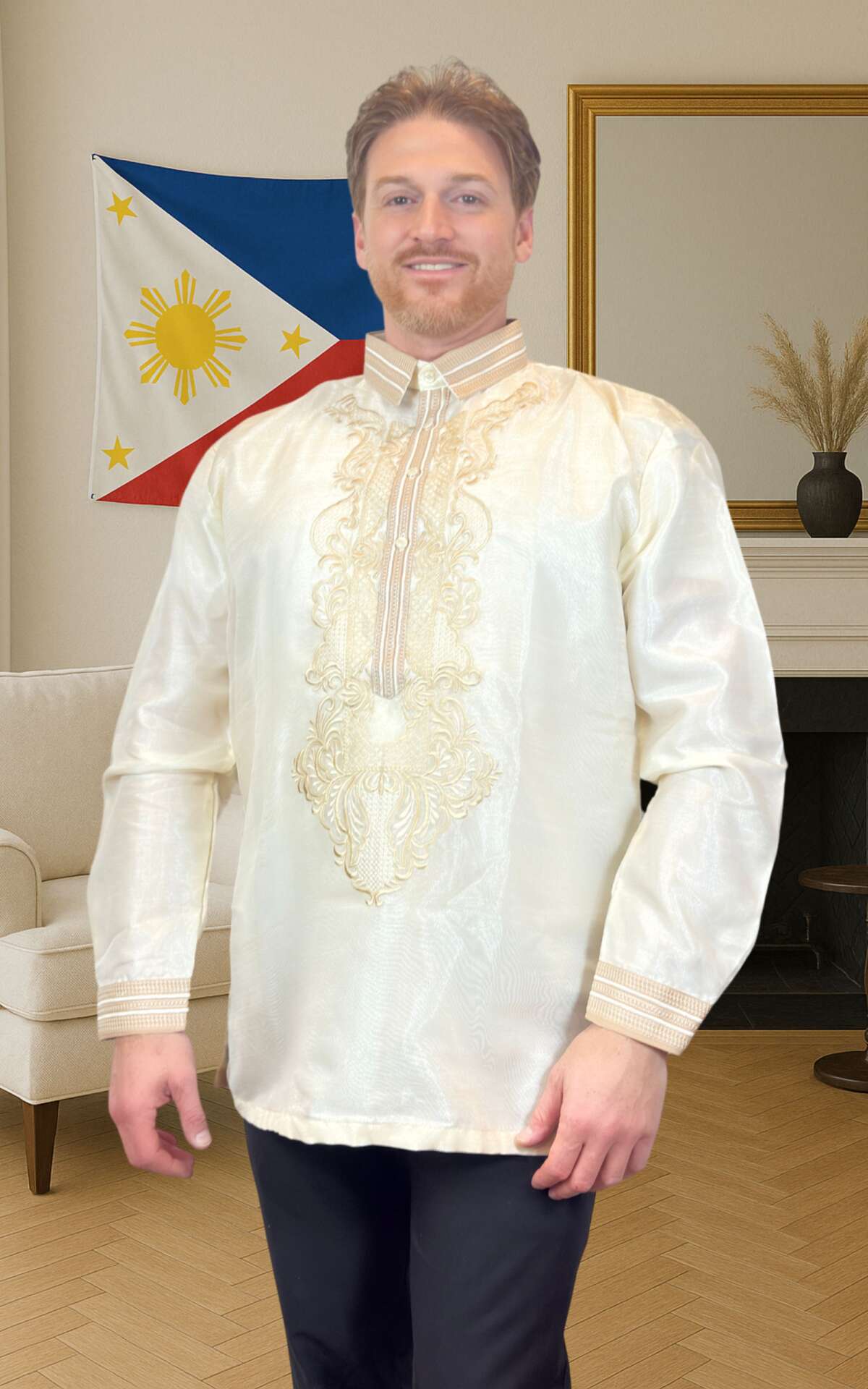 Celebrate Filipino culture with this handcrafted Barong Tagalog for men, a traditional shirt worn during significant life events.